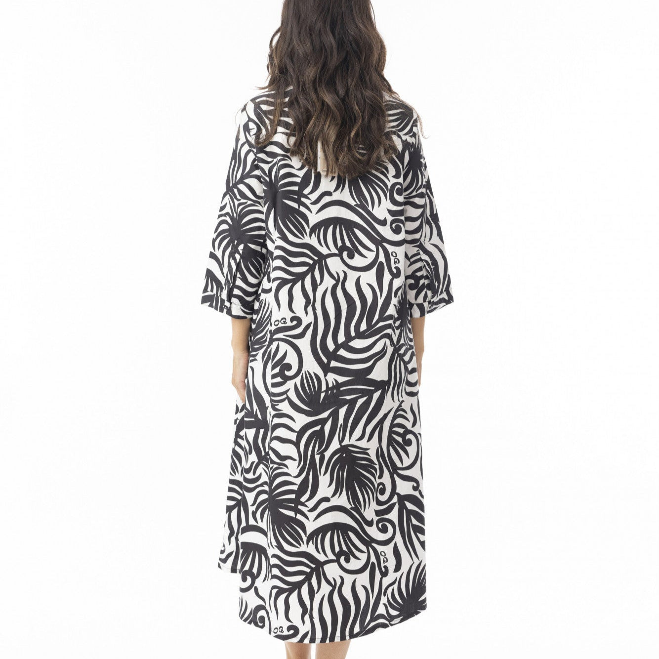 Made from 100% organic cotton, the Suriname Black 3/4 Sleeve Shirt Dress blends timeless design with contemporary charm. Its classic button-down front, three-quarter sleeves, and collared neckline create an elegant yet relaxed look. The comfortable fit makes it ideal for both casual outings and relaxed evening affairs. Easy to care for with a cold handwash, this versatile dress from India is a stylish and essential addition to your wardrobe.